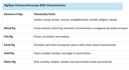 Pig Chinese Astrology 2025 (2019, 2007, 1995, 1983, 1971, 1959, 1947,1935) SALE PRICE!!